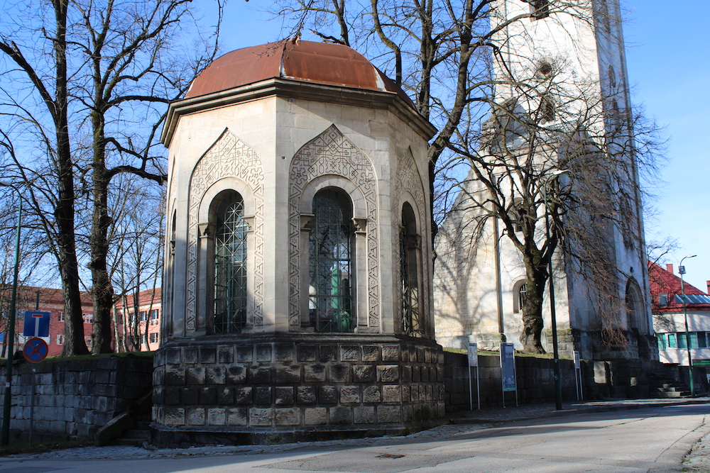 - Kada su Austro-Ugari odlučili ponovo graditi katoličku crkvu na izvornim temeljima, uklonili su drveno turbe, ali kao čin pomirenja i vjerske ravnoteže, dozvolili su gradnju novog turbeta, samo nekoliko metara dalje.